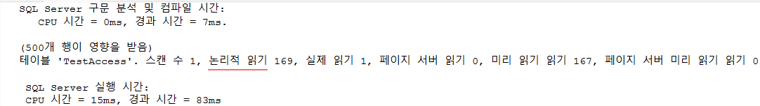 -- 물리적 및 논리적 IO 작업 양에 대한 정보 표시
