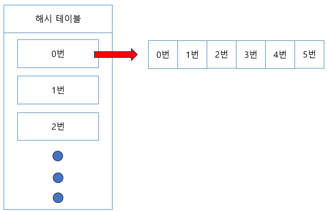 해시 테이블은 하나의 인덱스에 자료구조를 저장하고 개별 인덱스의 키를 통해