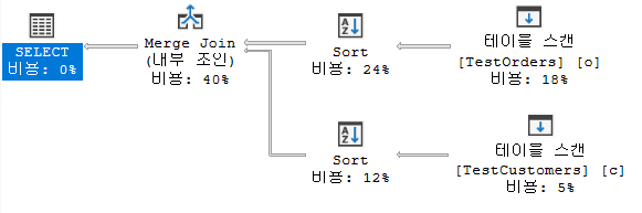 이때 Inner인 TestCustomers에서 인덱스가 없기 때문에 많은 비용을 소모합니다.