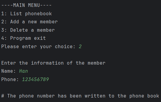 사용자로부터 이름과 전화번호를 입력받아 추가하는데,