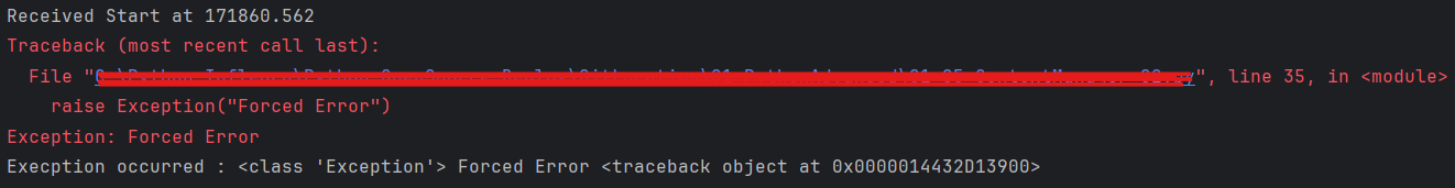 print(f"Execption occurred : {errorType} {errorValue} {errorPoint}")