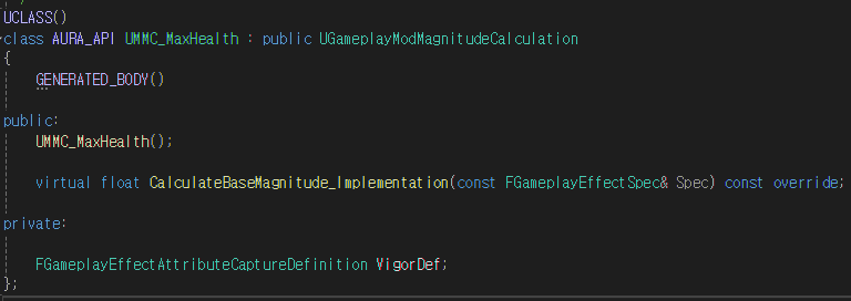 - 캡쳐된 Attribute를 통한 연산 수행 : CalculateBaseMagnitude 함수 오버라이드