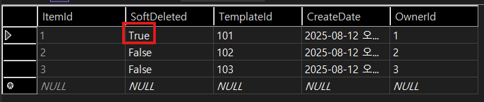 프로젝트에서는 Item 클래스에 대해 SoftDeleted가 false인 데이터만 사용할 수 있습니다.