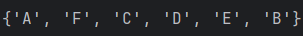 s2 = set(['A', 'B', 'C', 'D', 'E'])