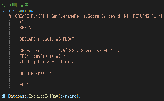 EF-Core에서 선언한 UDF를 SQL 문법을 사용하여 정의합니다.