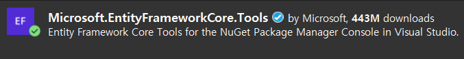 이때 EntityFrameworkCore.Tools 플러그인이 설치되어 있어야 합니다.