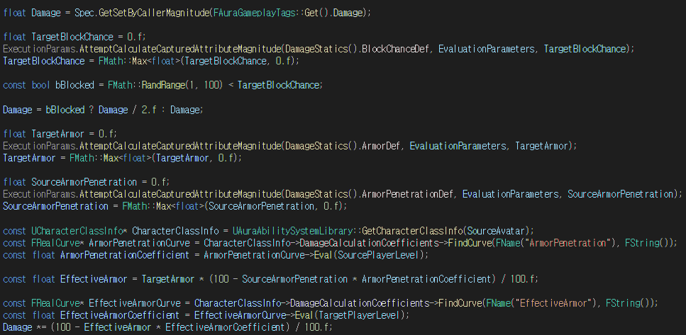 - ArmorPenetration 어트리뷰트의 값을 가져와 Target의 Armor 어트리뷰트를 일부 무시