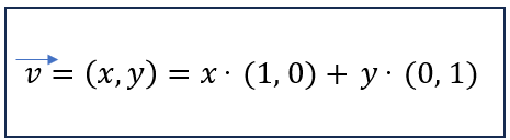 벡터 공간 V에서의 벡터 v는 위와 같이 표준기저벡터의 선형 결합을 통해 생성된다