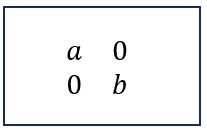 변환된 두 개의 표준기저벡터 (a, 0)과 (0, b)를 열벡터로 설정하여 생성한 크기 변환행렬은 다음과 같다