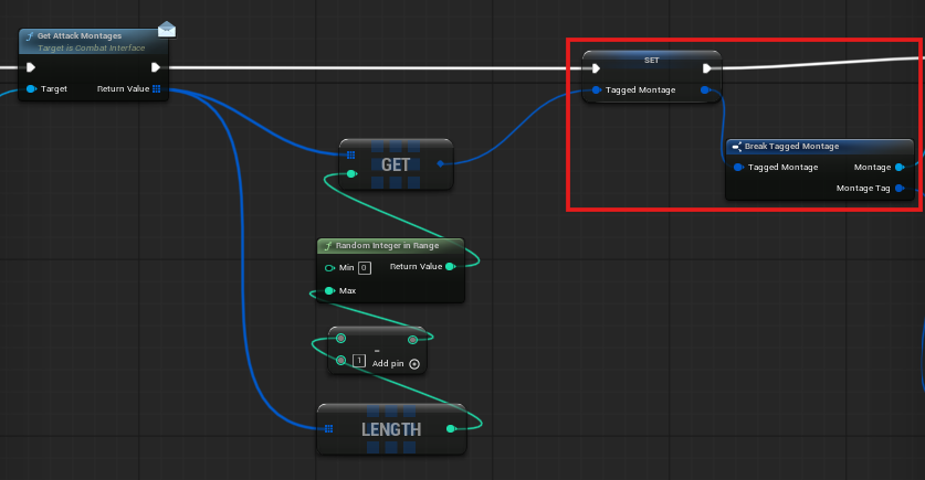몬스터의 AttackMontages에서 랜덤하게 가져온 값을 TaggedMontage 변수로 저장하여 사용하도록 변경한다