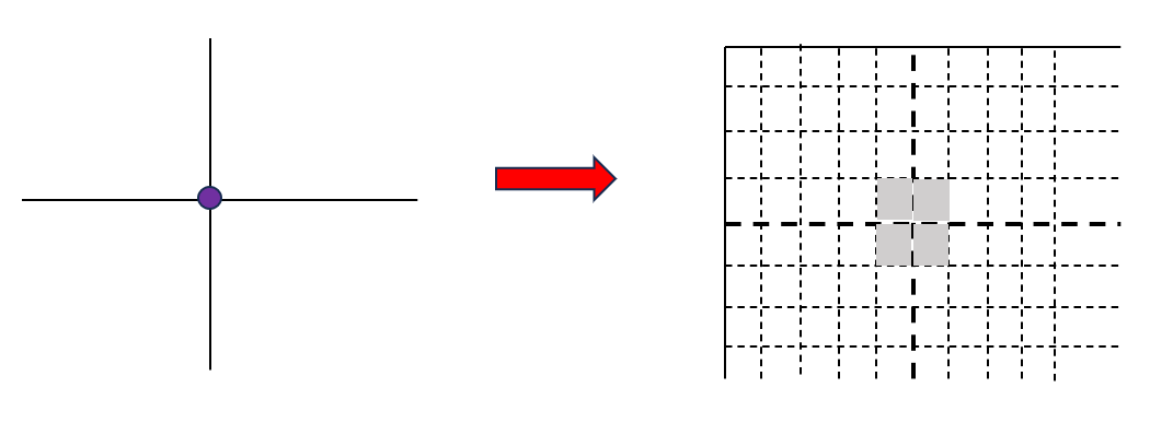 스크린 좌표계의 픽셀의 가장 자리에 벡터 좌표가 걸쳐 있다면 일관성 있는 규칙을 설정하고 적합한 픽셀을 선택해야 한다