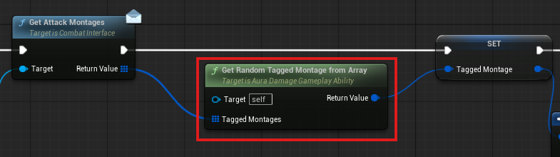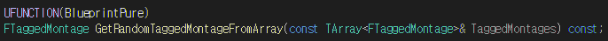 TaggedMontage가 저장된 TArray를 인자로 받아 순회하면서 랜덤한 TaggedMontage를 반환한다