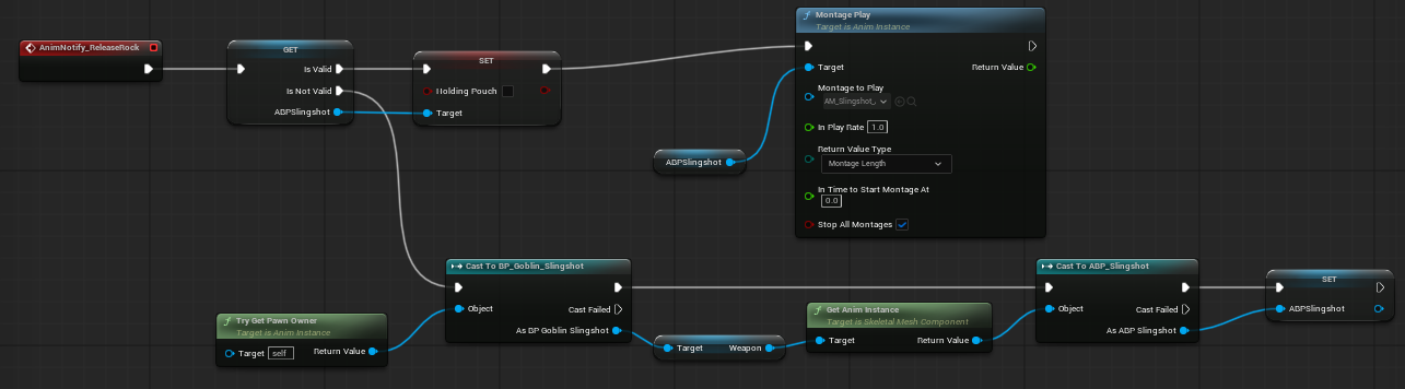 - 유효한 경우 : 새총의 AnimInstance의 HoldingPouch를 false로 설정 + 새총의 공격 애니메이션 몽타주 재생