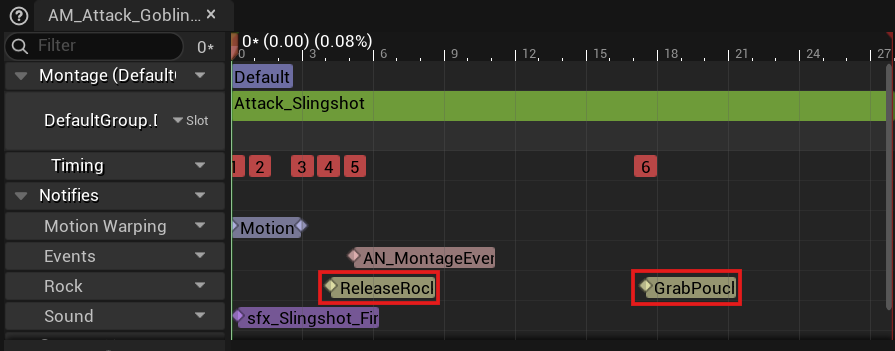 - ReleaseRock 이벤트 : 새총의 당겨지는 애니메이션 몽타주를 재생