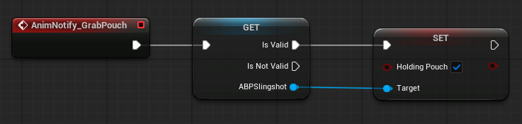 - GrabPouch 이벤트 : 새총의 애니메이션 블루프린트의 HoldingPouch를 설정