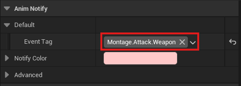 설정한 AnimNotify의 Tag를 위와 같이 설정하여 Tag에 해당하는 Event를 실행할 수 있도록 구성한다
