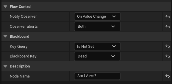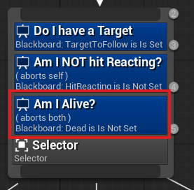 위와 같이 데코레이터를 설정하여 Dead 키의 값이 설정되면 Composite 노드의 활동을 전부 중단한다