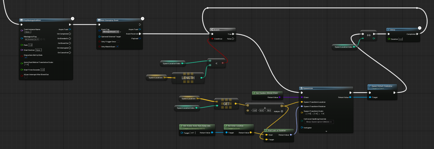 이후 소환할 몬스터의 수를 의미하는 NumMinions 만큼의 몬스터를 소환하기 위해 반복문을 수행한다