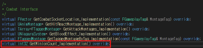 GetMinionCount 함수를 위와 같이 오버라이드하여 MinionCount 멤버변수를 반환하도록 설정한다