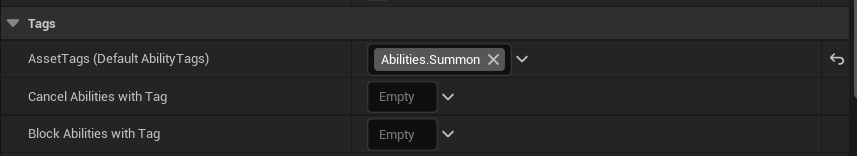 임프를 소환하는 GameplayAbility는 공격과는 다른 개념이므로 해당 GA를 표현하는 Tag를 추가한다