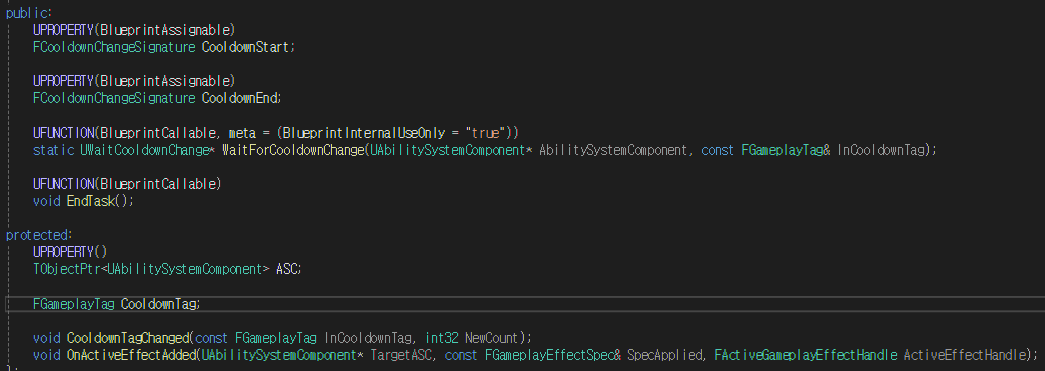 - 생성한 인스턴스의 ASC 멤버변수 + CooldownTag 멤버변수를 설정