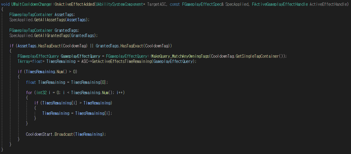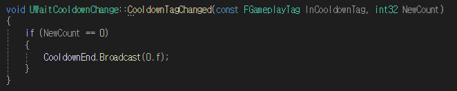 - Tag가 생성 / 추가되면 CooldownTagChanged 함수 호출