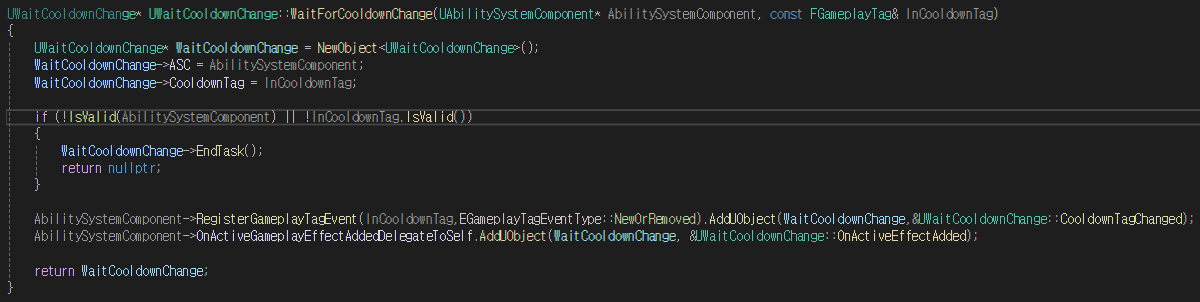 - NewObject를 통해 새로운 WaitCooldownChange 인스턴스를 생성
