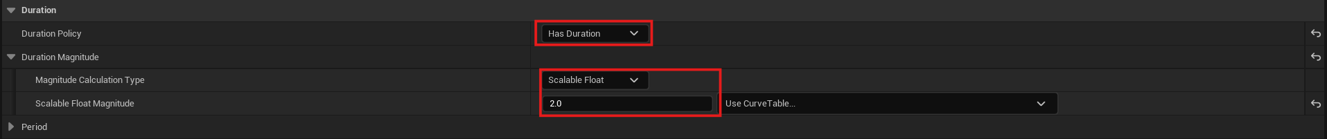 FireBolt 어빌리티에 쿨타임을 적용하는 GameplayEffect에서 2초 동안 쿨타임을 적용하도록 설정한다