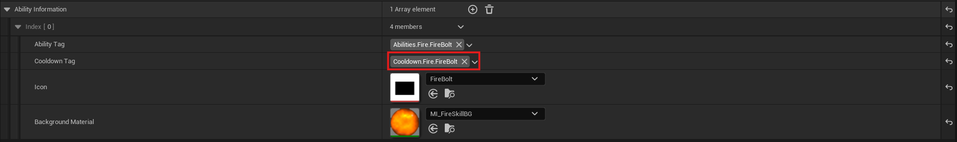 FireBolt 어빌리티의 Cooldown Tag를 위와 같이 설정한다