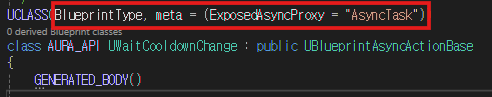 - meta = (ExposedAsyncProxy = "AsyncTask") : AsyncTask 노드에서 클래스의 인스턴스를 Output으로 노출