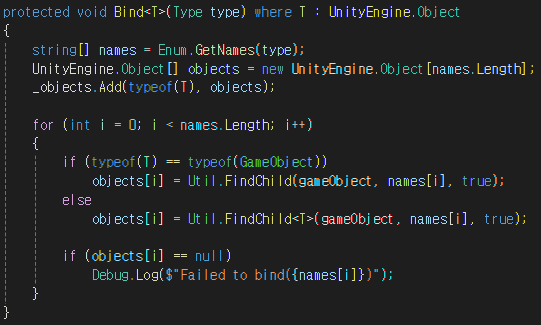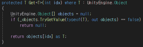 GetObject 함수는 위의 Get 제네릭 함수를 GameObject로 사용할 수 있도록 설정한 함수이다