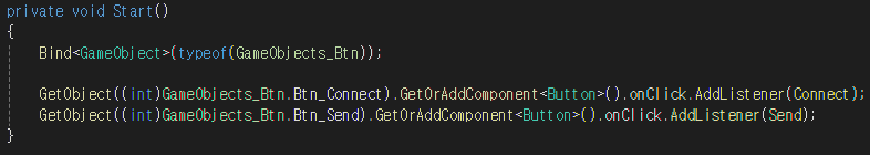 Start 함수에서는 GameObjects_Btn의 멤버들을 GameObject로 바인드하고,