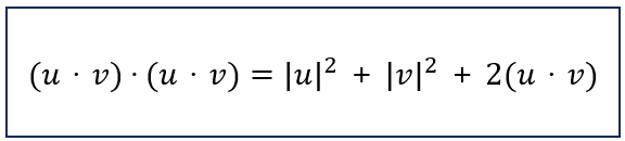 벡터의 내적은 교환법칙과 분배법칙이 성립하므로 두 벡터 합의 내적은 두 벡터의 크기로 표현할 수 있다