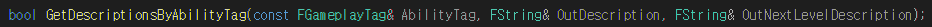 - GetDescription 함수 : 현재 레벨의 스킬 어빌리티에 대한 설명을 가져오는 함수