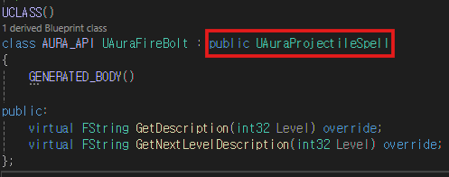 기존에 존재하던 화염구 스킬의 GA로 사용할 AuraFireBolt 클래스를 추가한다
