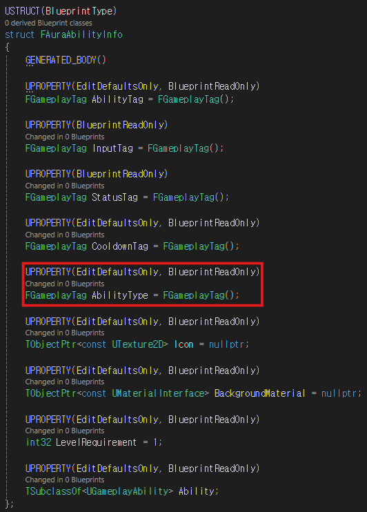 AuraAbilityInfo 구조체에 AbilityType 멤버변수를 추가하여 스킬 어빌리티의 타입을 지정한다