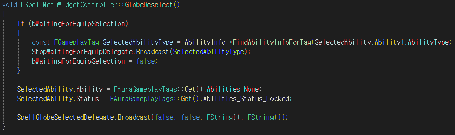 - GlobeDeselect 함수 : 선택된 스킬 UI를 다시 선택하는 경우 호출