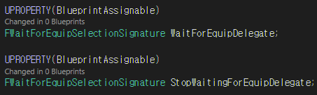 WaitForEquipSelectionSignature 델리게이트와 관련된 멤버변수를 2개 추가한다