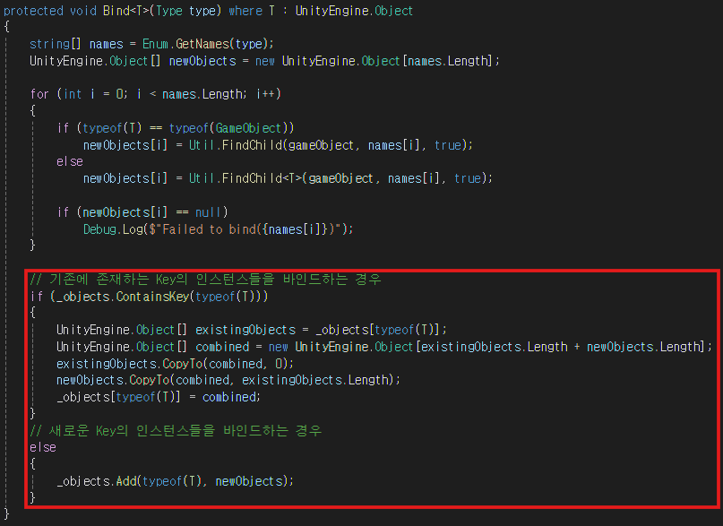 Bind 함수를 위와 같이 수정하여 기존에 존재하는 Key의 인스턴스들을 바인드하는 경우와