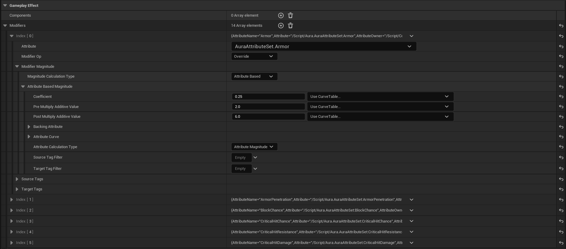 연산에 참고할 Attribute를 지정하는 AuraDamageStatics 구조체에서 TagsToCaptureDefs 멤버변수를 제거하고,