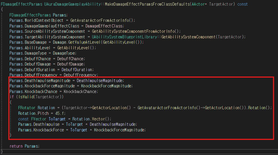 MakeDamageEffectParamsFromClassDefaults 함수에 위와 같이 로직을 추가하여