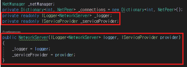 멤버변수에 위와 같이 ILogger와 IServiceProvider를 추가한다