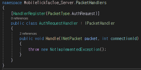 따라서 HandleRegister 어트리뷰트에 PacketType.AuthRequest 속성을 사용한다